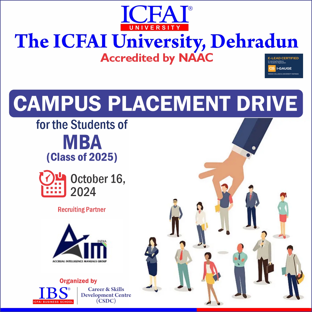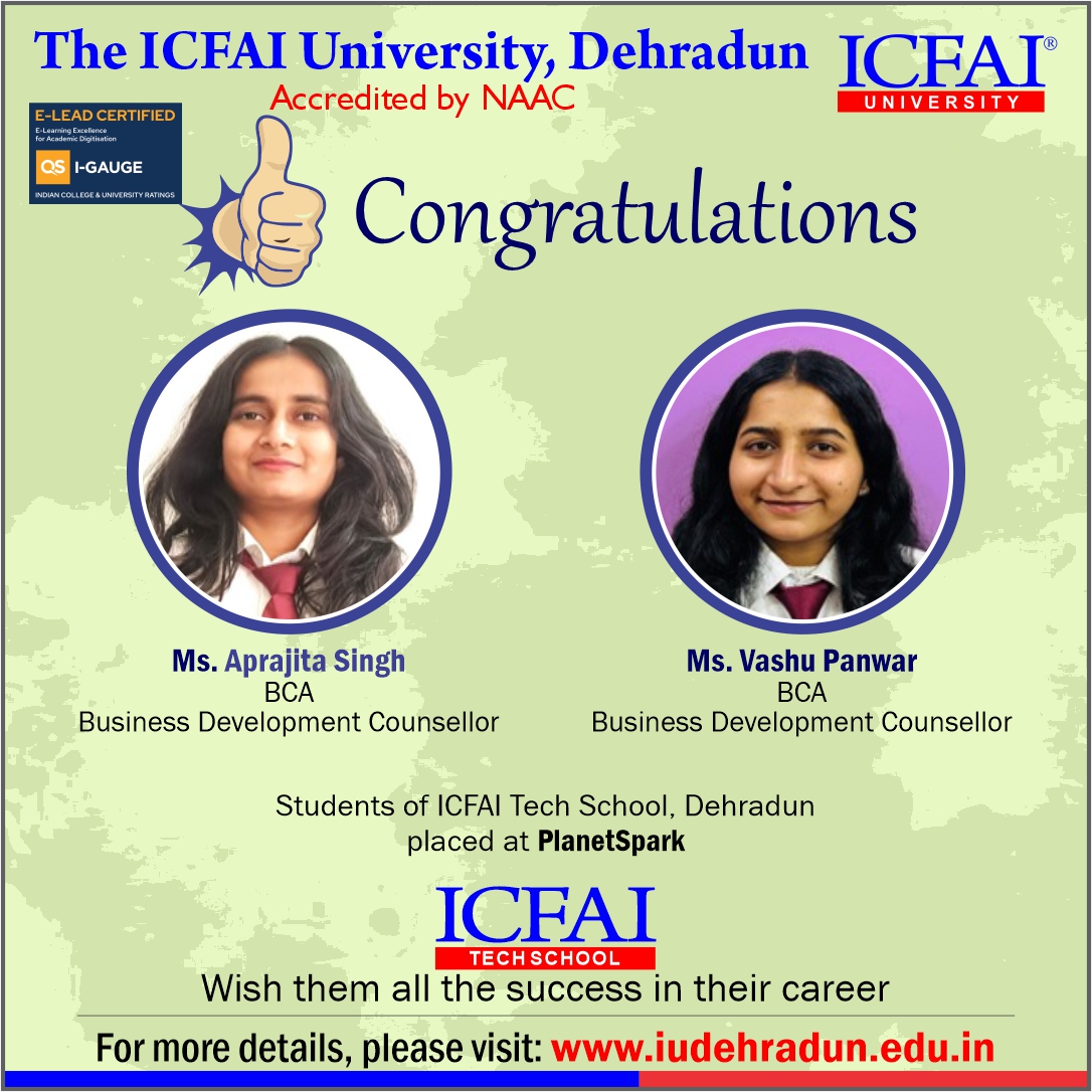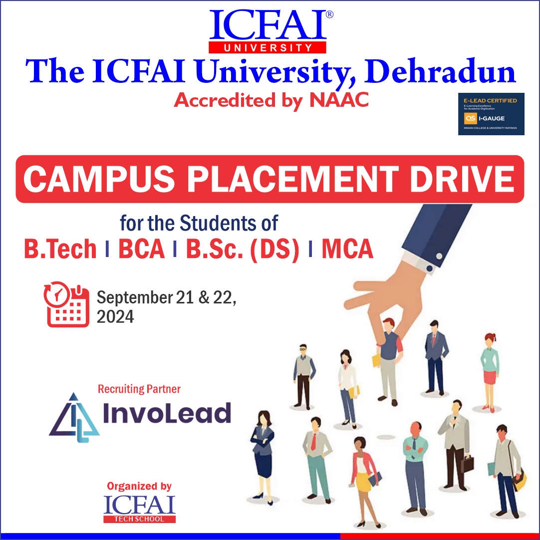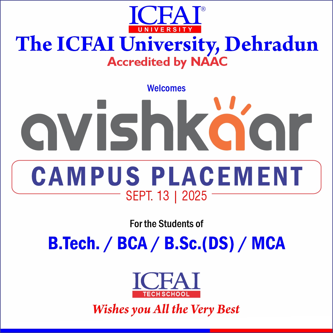 - At The ICFAI University, Dehradun, our dedicated Placement Department works tirelessly throughout the year to ensure students receive top-notch placement support. But it doesn't stop there - we go beyond the classroom with expert-led Guest Lectures and insightful Industrial Tours, giving students real-world exposure and the confidence to thrive in today's competitive world.