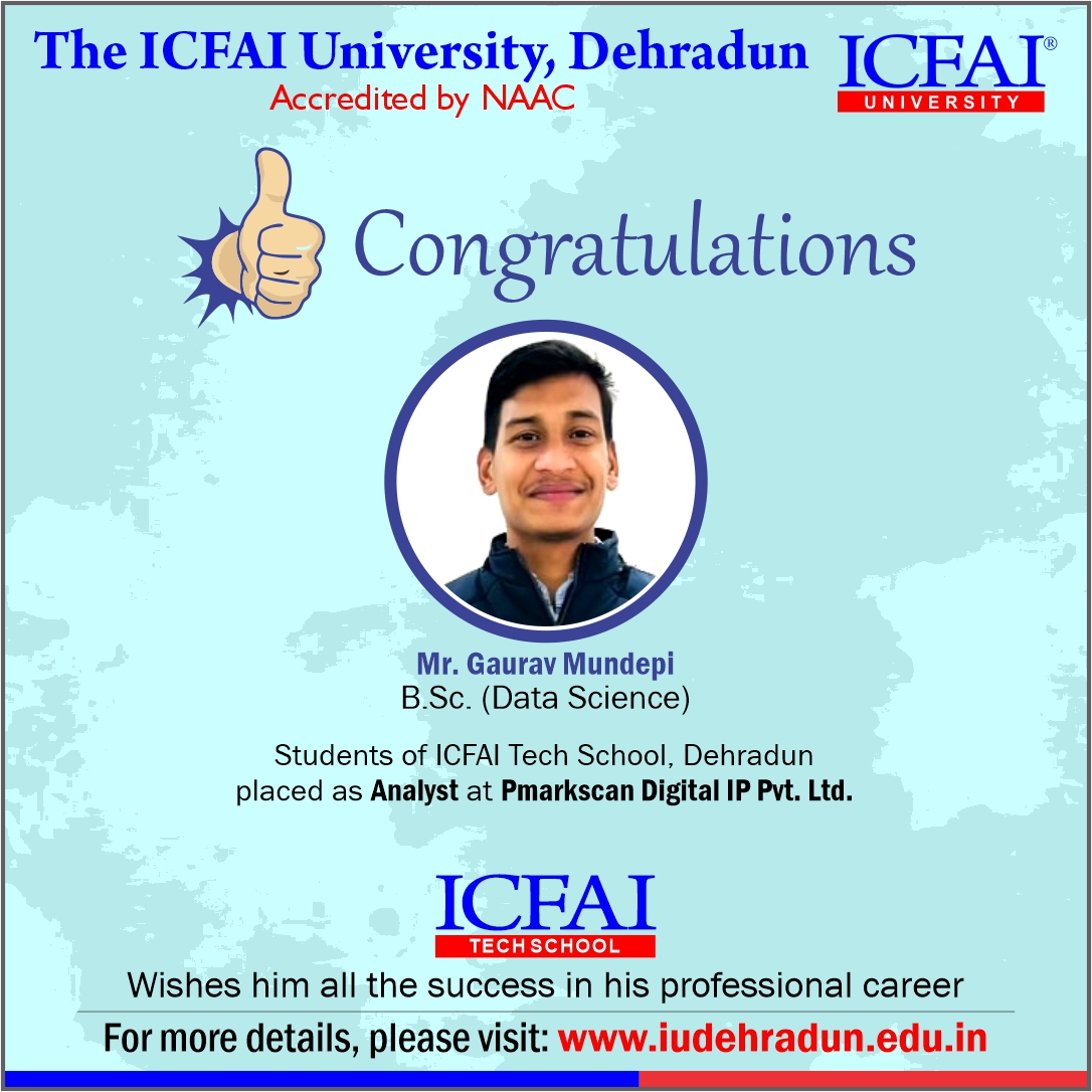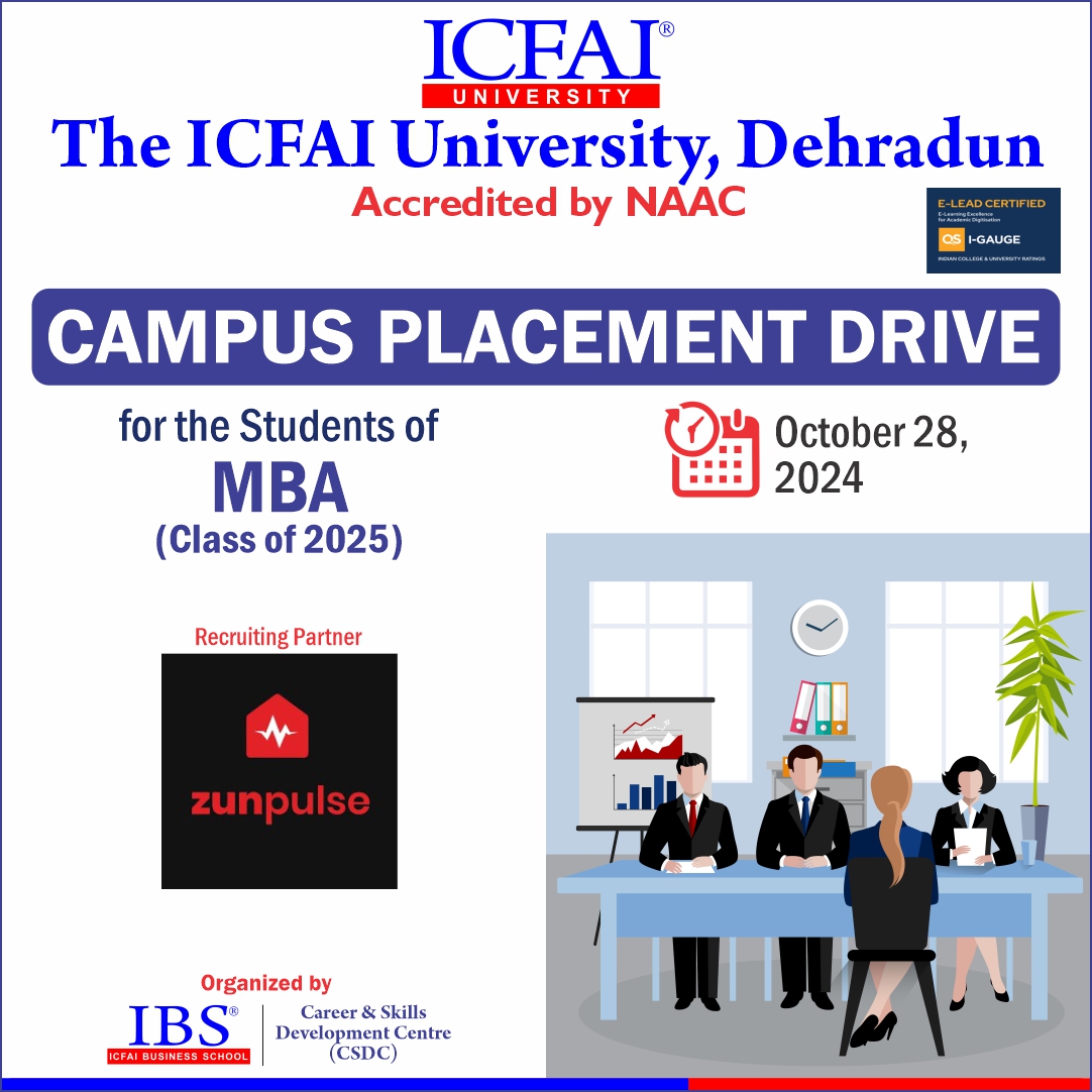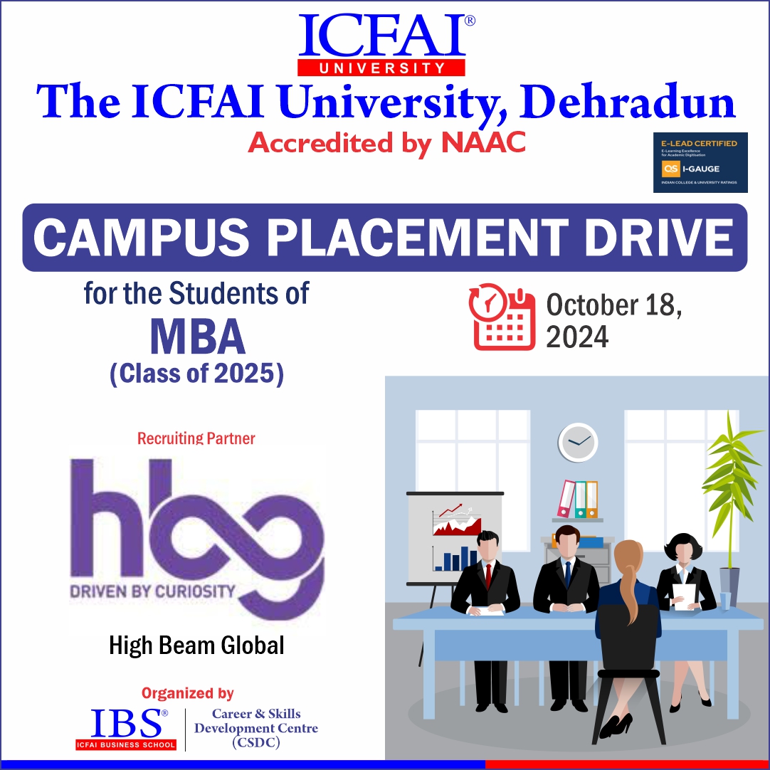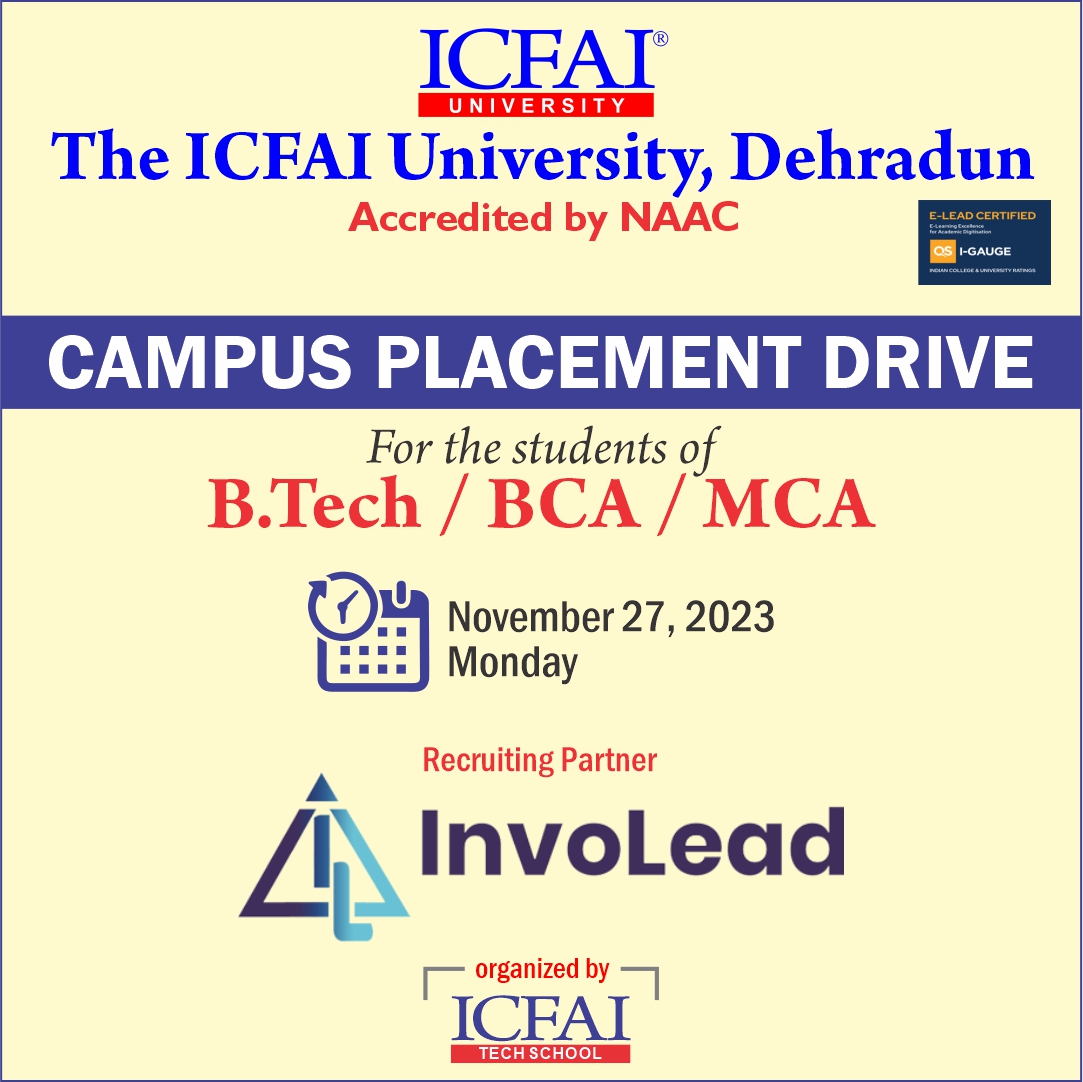 - At The ICFAI University, Dehradun, our dedicated Placement Department works tirelessly throughout the year to ensure students receive top-notch placement support. But it doesn't stop there - we go beyond the classroom with expert-led Guest Lectures and insightful Industrial Tours, giving students real-world exposure and the confidence to thrive in today's competitive world.