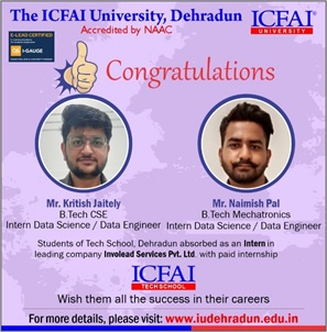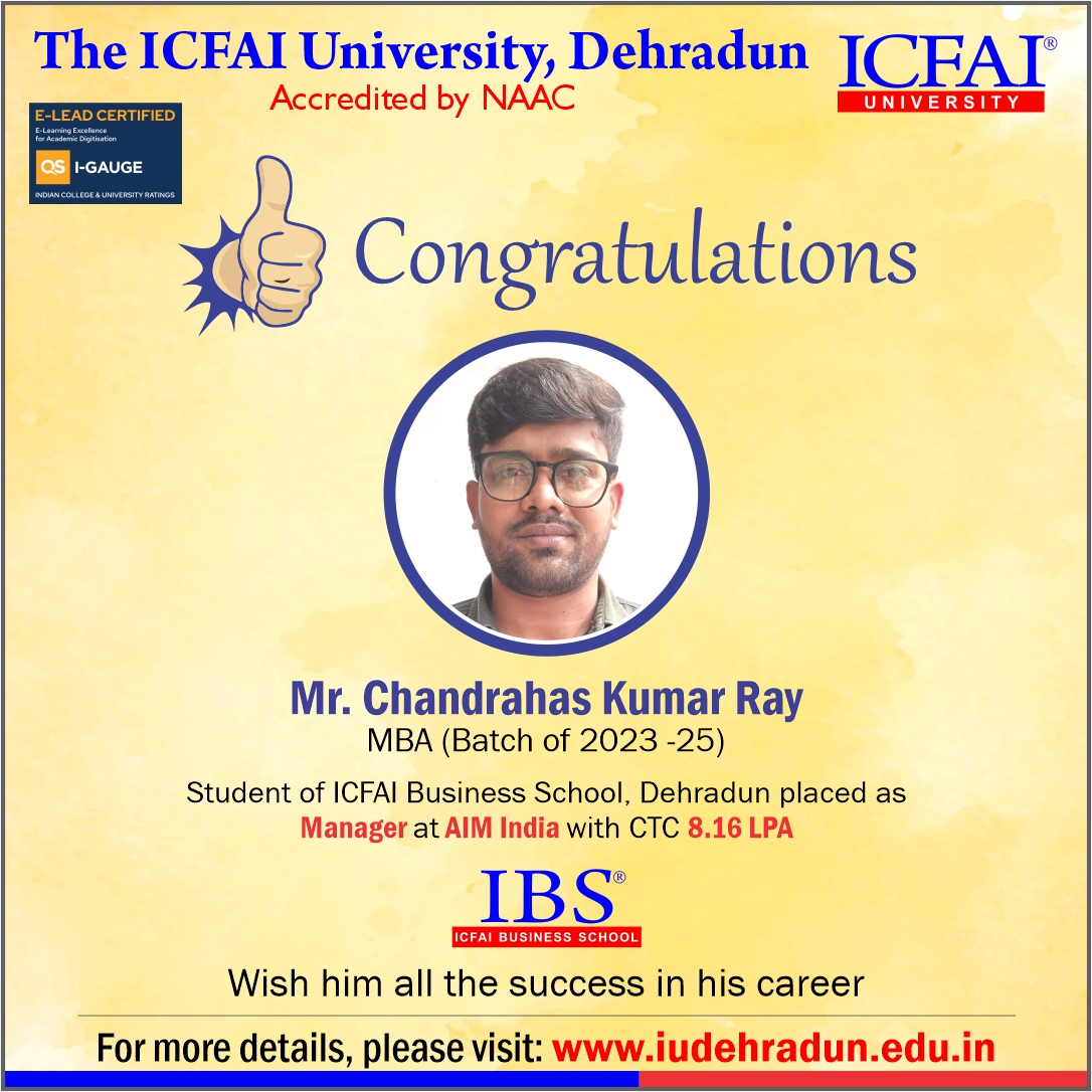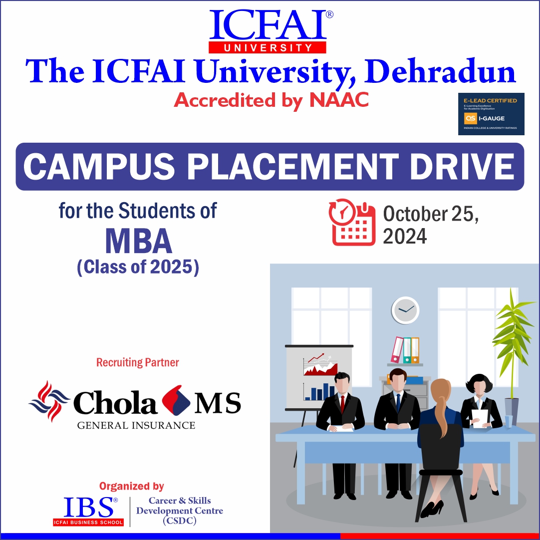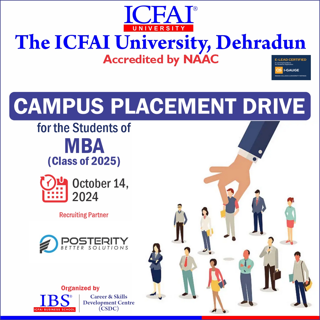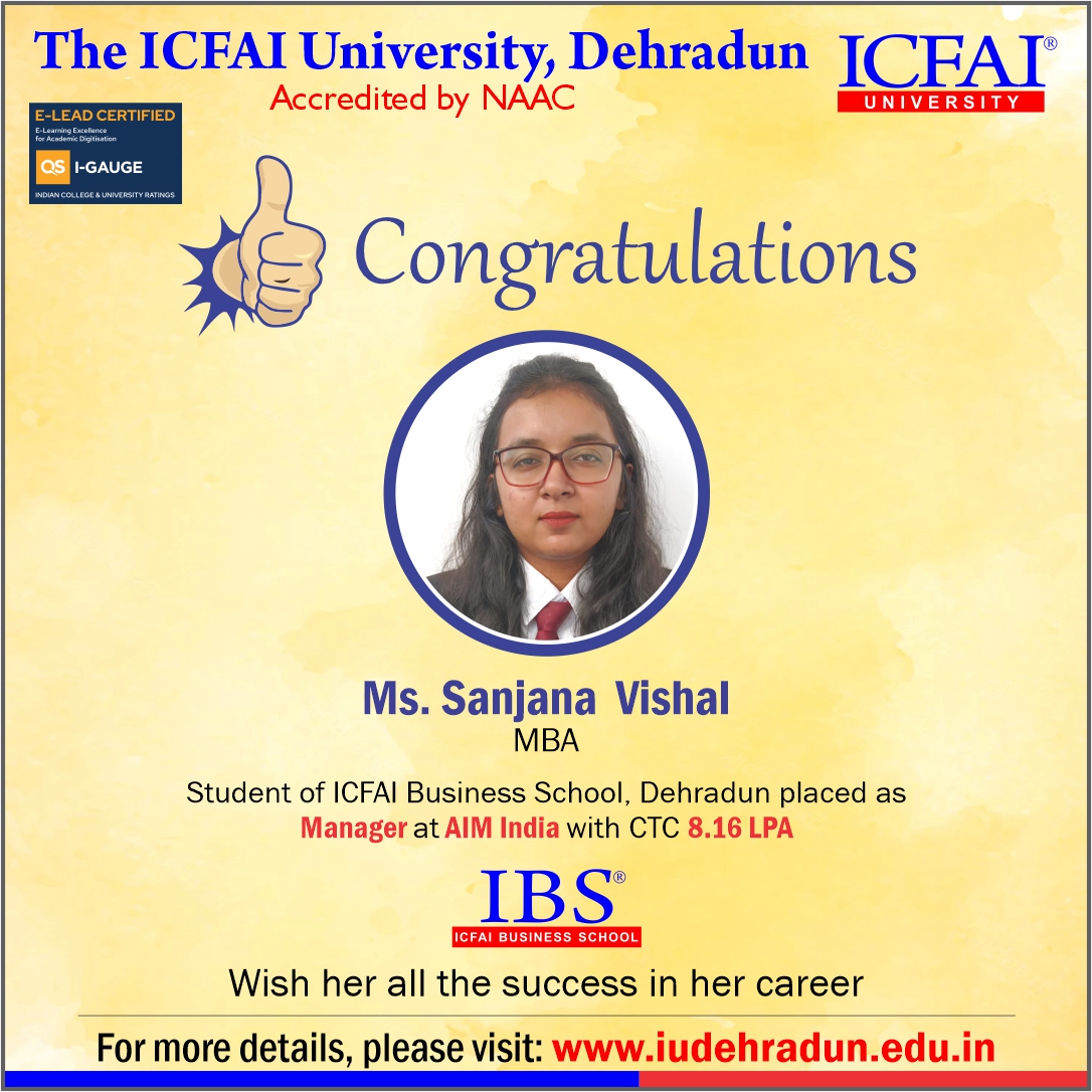 - At The ICFAI University, Dehradun, our dedicated Placement Department works tirelessly throughout the year to ensure students receive top-notch placement support. But it doesn't stop there - we go beyond the classroom with expert-led Guest Lectures and insightful Industrial Tours, giving students real-world exposure and the confidence to thrive in today's competitive world.