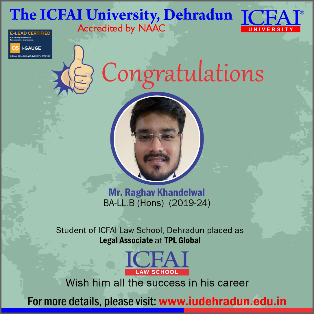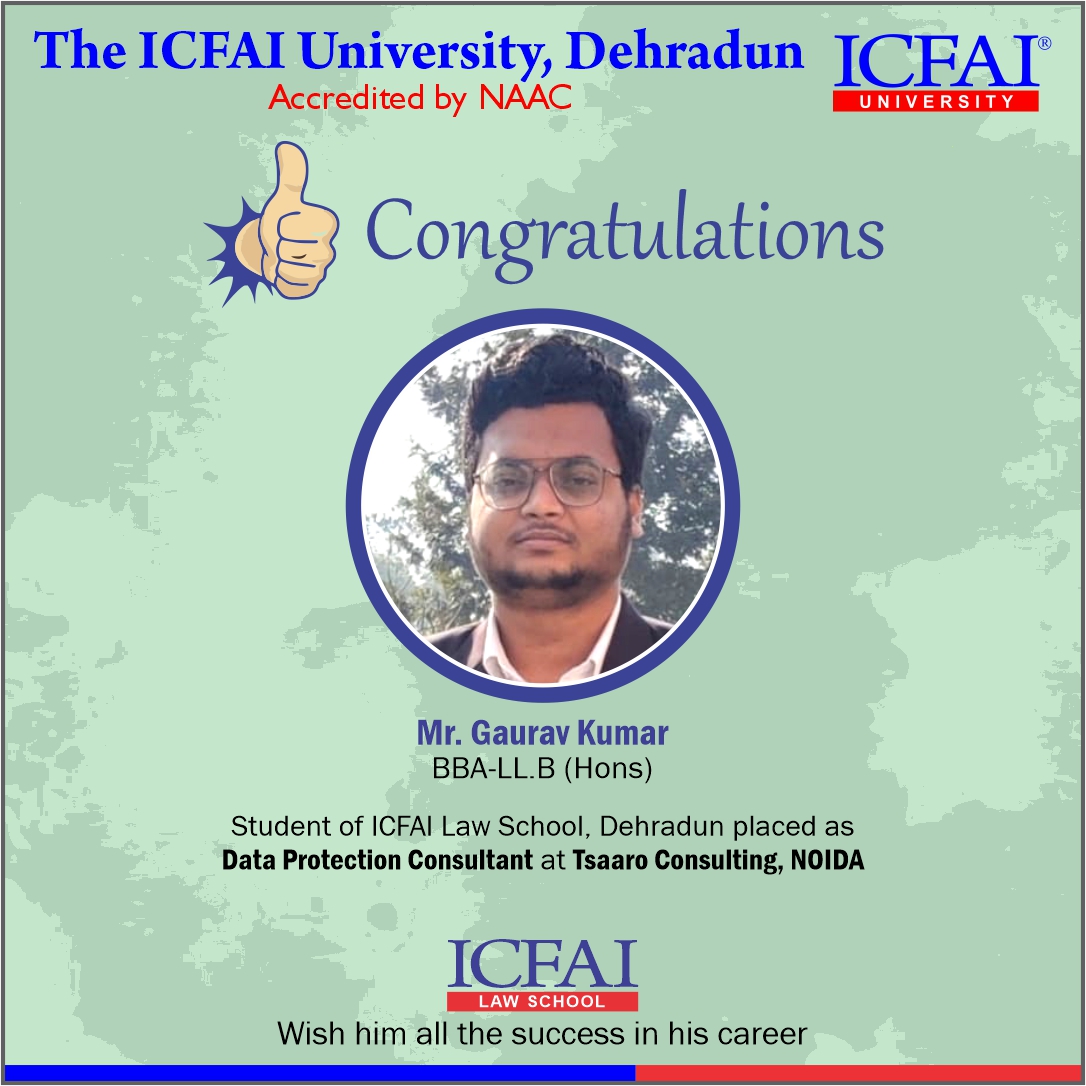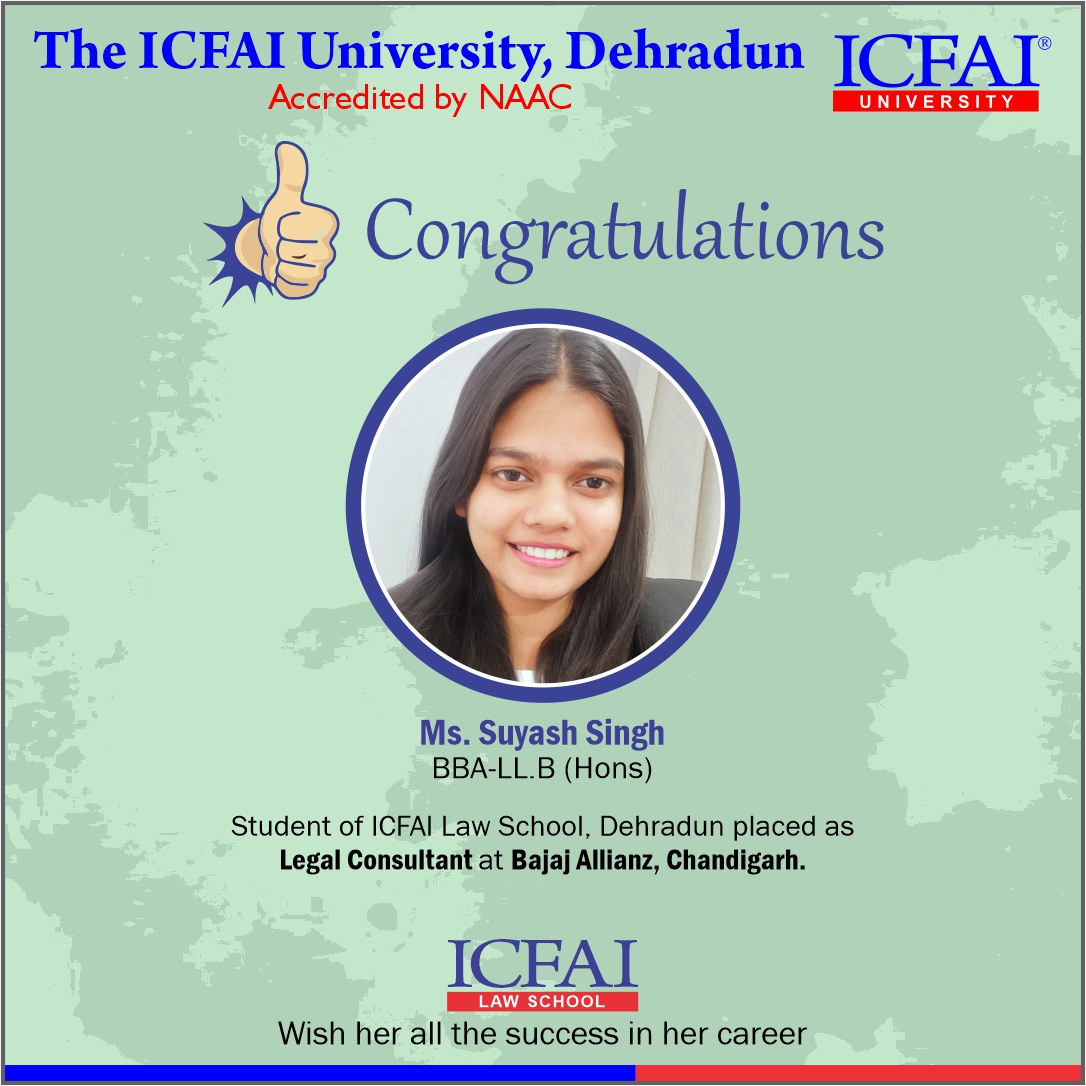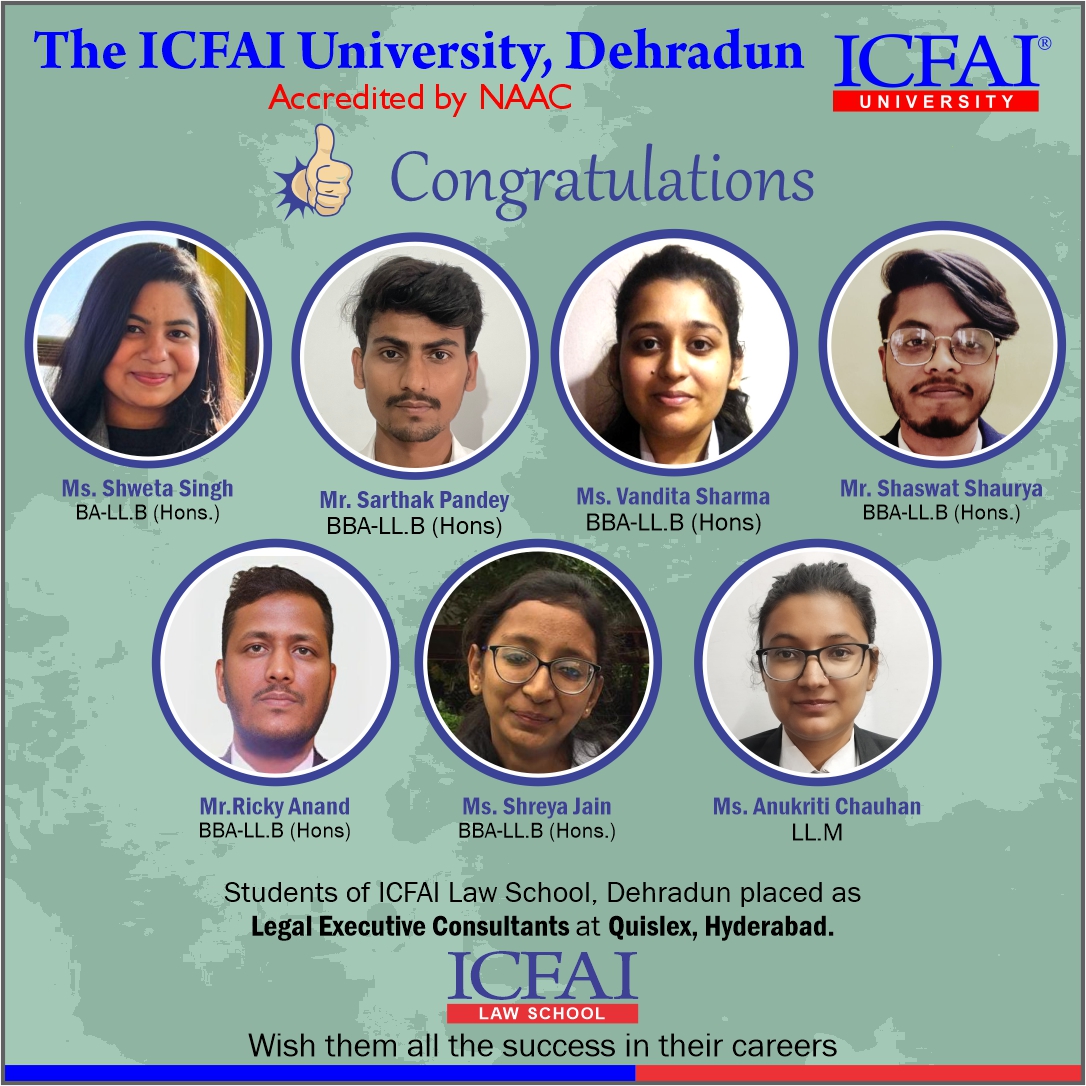 ICFAI Law School, Dehradun has a track record of more than 90% placements in all passed out batches so far.