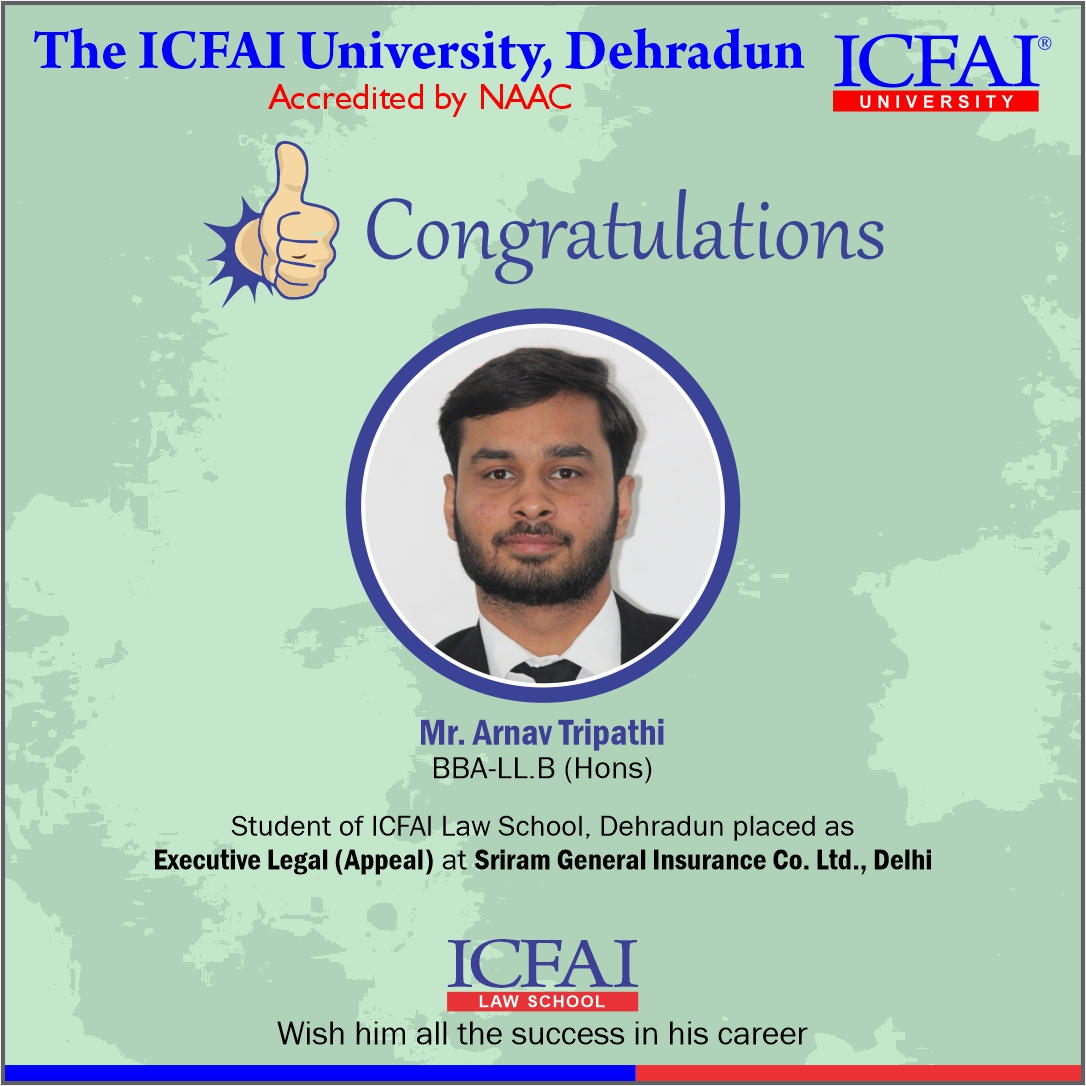 | 14 | 20FLICDDN01050 | ARNAV TRIPATHI | BBA-LL.B (Hons.) | 2020-25 | Shri Ram Genral Insurance Co. Ltd | ![]() |