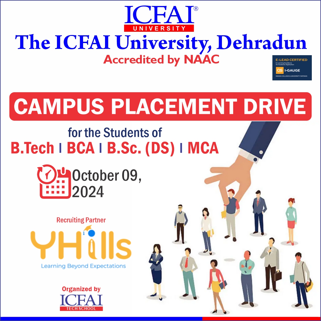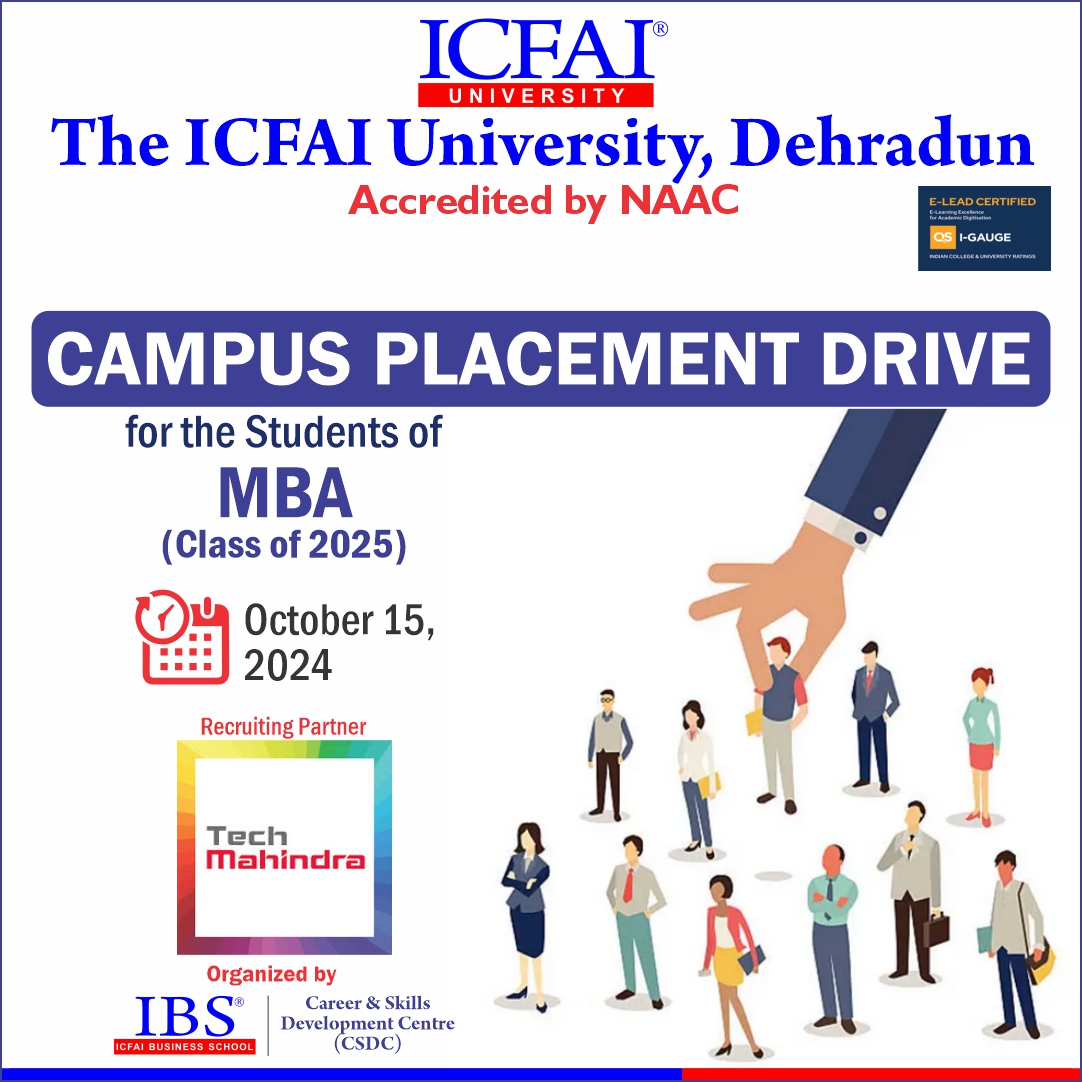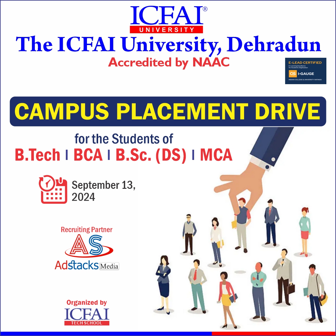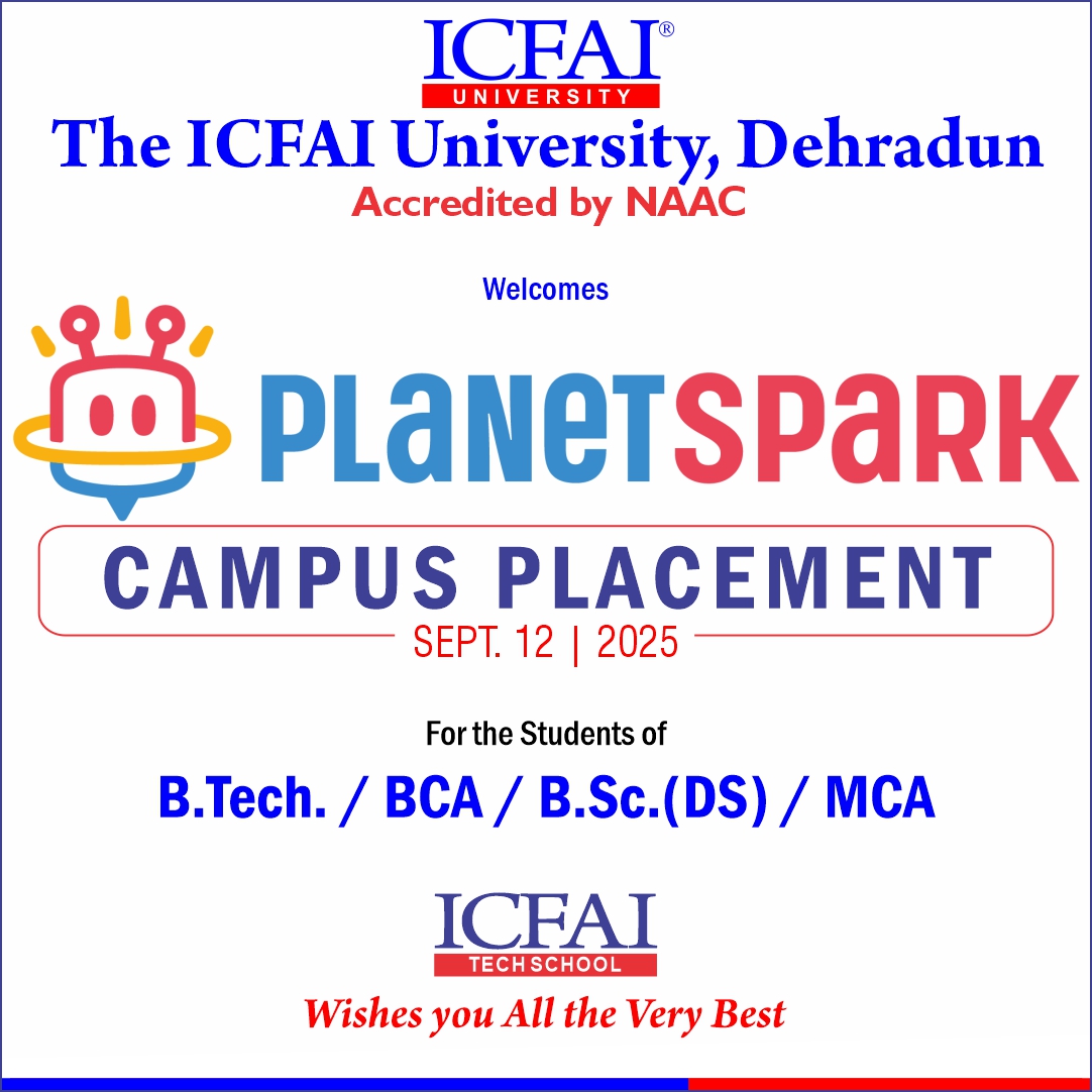 - At The ICFAI University, Dehradun, our dedicated Placement Department works tirelessly throughout the year to ensure students receive top-notch placement support. But it doesn't stop there - we go beyond the classroom with expert-led Guest Lectures and insightful Industrial Tours, giving students real-world exposure and the confidence to thrive in today's competitive world.