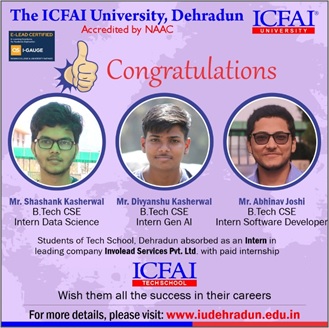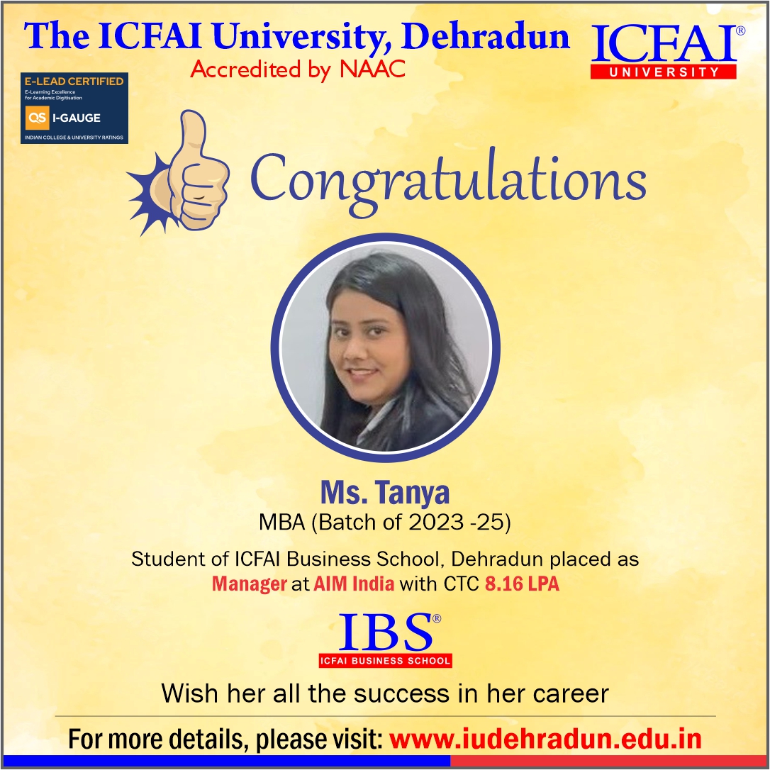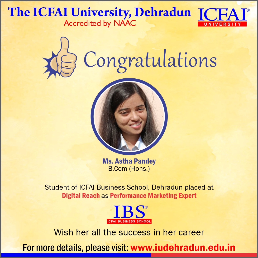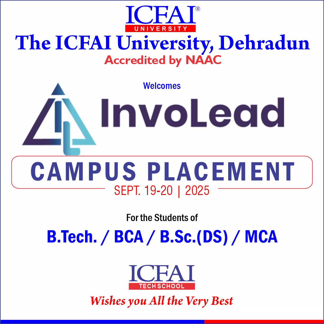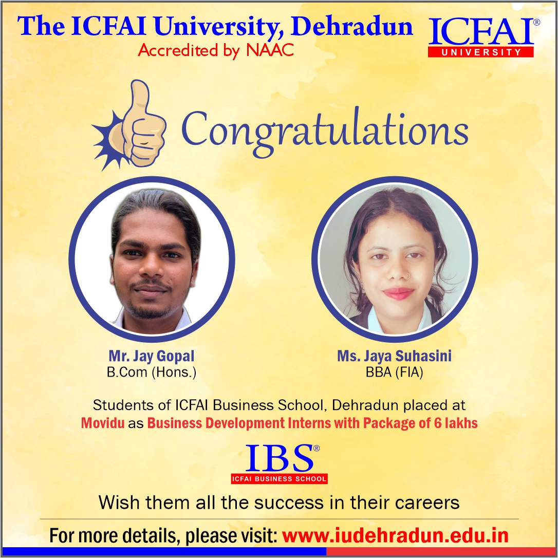 - At The ICFAI University, Dehradun, our dedicated Placement Department works tirelessly throughout the year to ensure students receive top-notch placement support. But it doesn't stop there - we go beyond the classroom with expert-led Guest Lectures and insightful Industrial Tours, giving students real-world exposure and the confidence to thrive in today's competitive world.