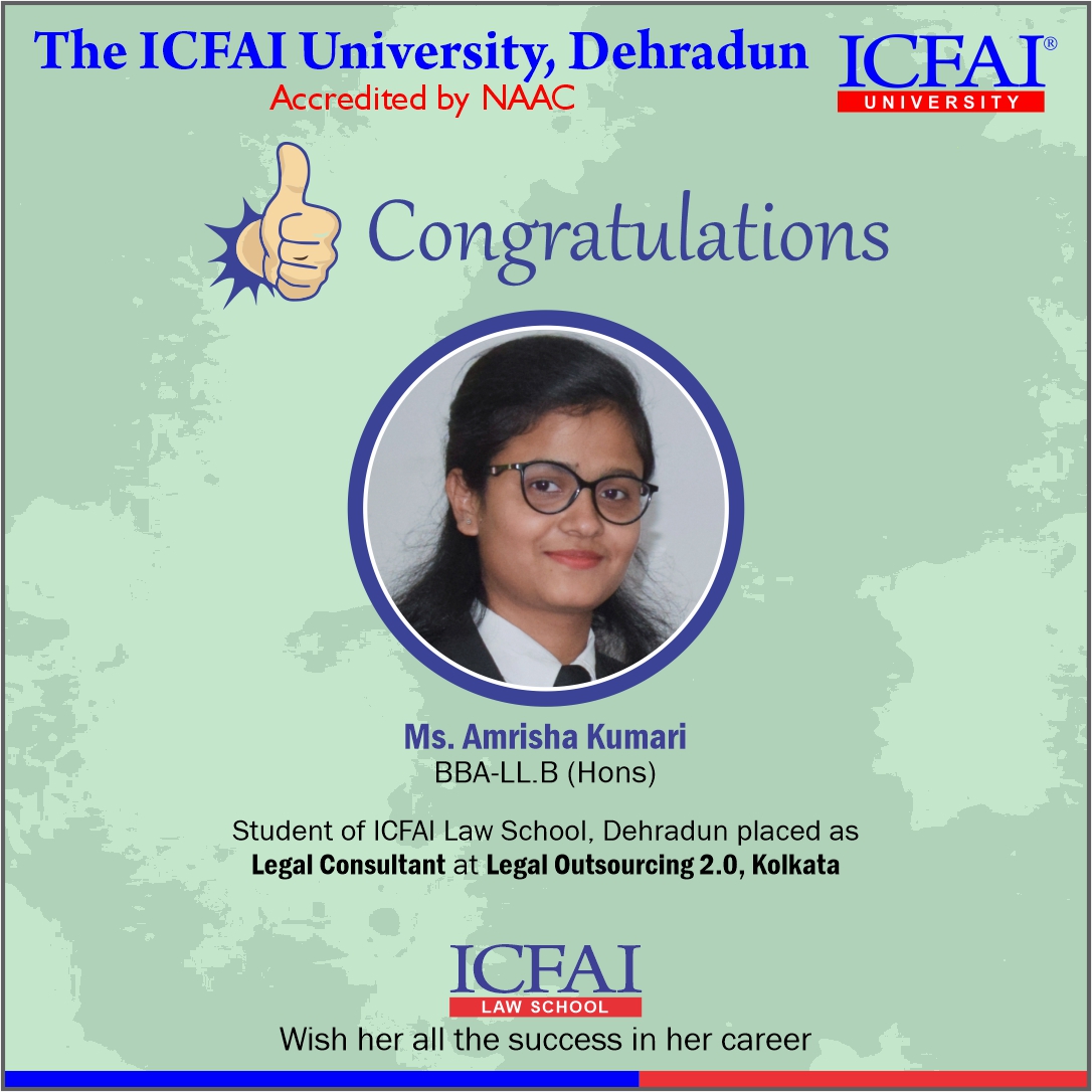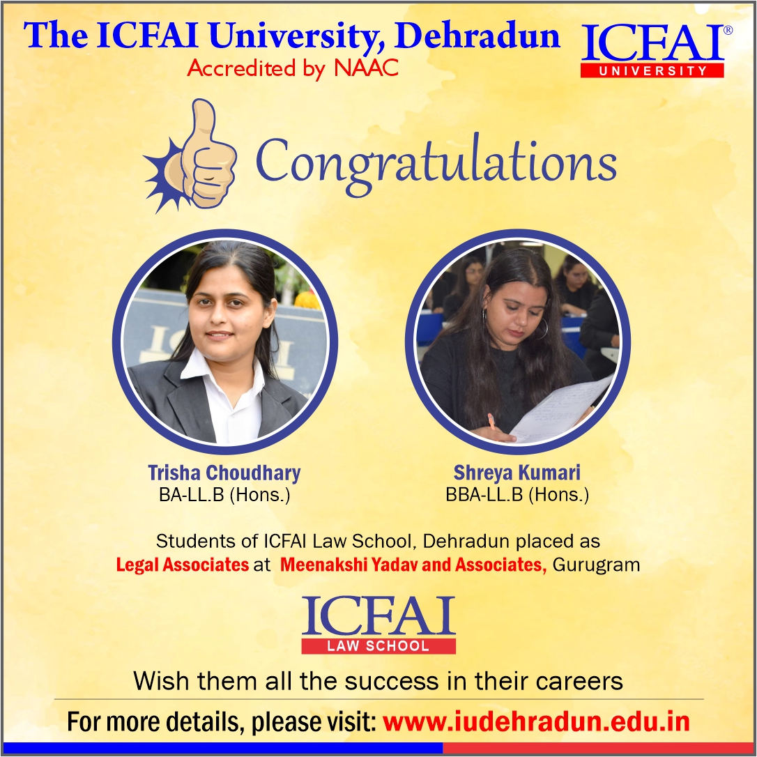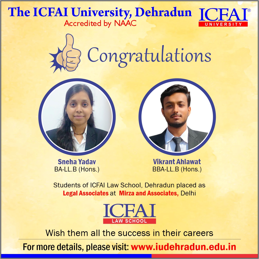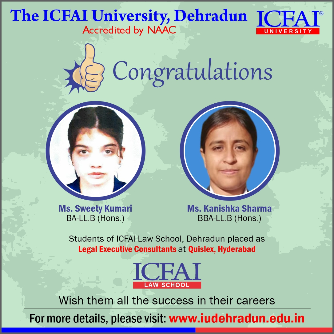 ICFAI Law School, Dehradun has a track record of more than 90% placements in all passed out batches so far.